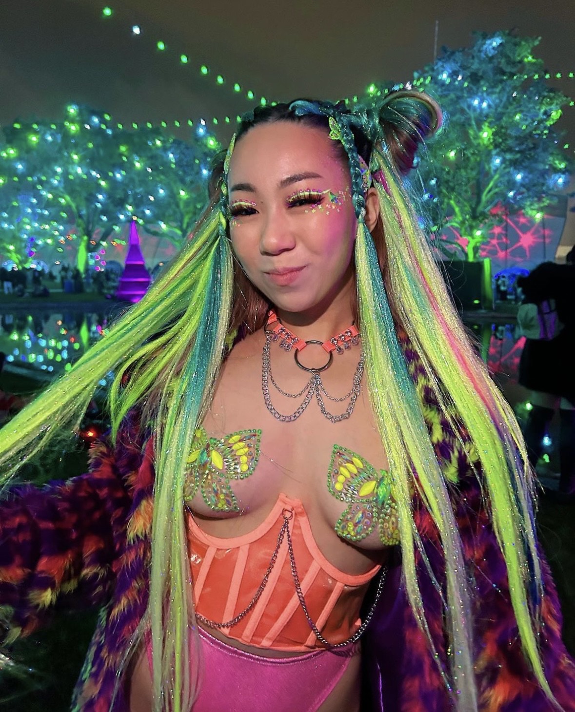 I feel so sooo lucky to have been able to learn self-love and appreciation in such a beautiful + loving environment. They may just be silly little outfits to some people, but for me, dressing myself up in extravagant looks for festivals is the way that I love myself. I so very much love being able to express myself in the rave community. SUCH A BLESSING !!🫶🏼💕